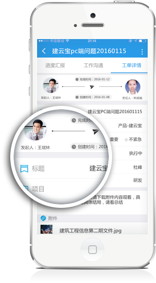 项目名称、附件的添加、完成时间、以及责任人的更新