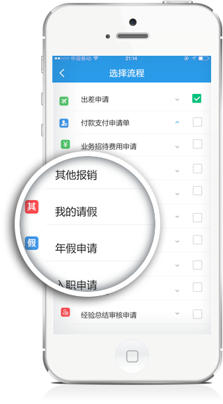 选择流程模板,可选择已经设定好的可选流程 比如:请假流程,部门审批人不确定,则由申请人自己选择